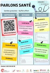 Le projet Parlons Santé a débuté en 2023 grâce au soutien du programme « Université et Cité » (IdEx Université de Strasbourg) et se poursuit grâce à l’implication de nombreux acteurs locaux.